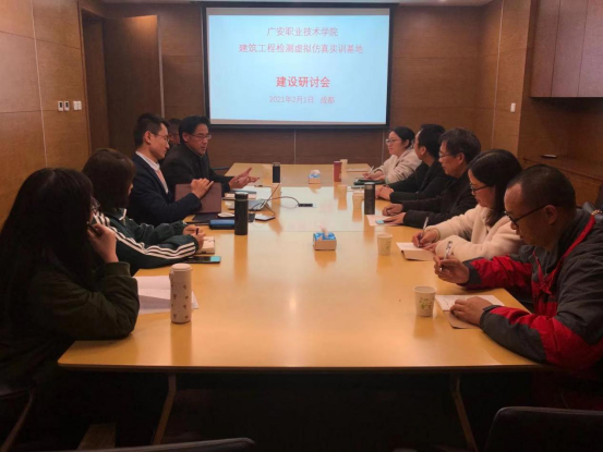 2020年2月1日,球王会官网土木工程学院会同校企合作处赴成都万维时空科技有限公司考察,并就进一步扩展学校建筑工程检测虚拟仿真实训基地功能进行了座谈。